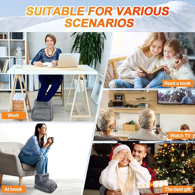 Enhanced Safety and Thermal Efficiency: These foot warmers are 100% safe. The electric heater comes with a protective coating that prevents heat from becoming uncomfortable and downright painful. You won’t have to worry about getting burned, or electrocuted. Its built-in temperature-sensing resistor probe to prevent overheating, providing a safe and worry-free experience. The design also maximizes the thermal efficiency, effectively retaining heat and keeping your feet warm for extended periods.